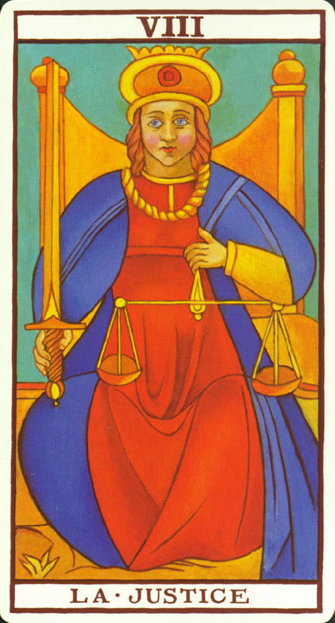 In the Rider-Waite deck, the cards for Justice and Strenght have swapped places, because Waite saw links between the cards and the astrological signs Leo and Libra.