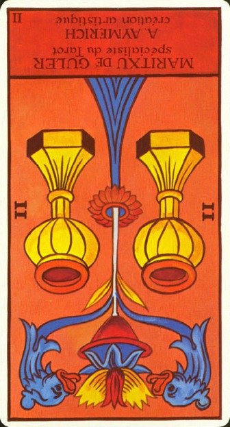 This the first assignment number of the Cups suit. Unlike Wands, with the Fire element, Cups, with the water element, has a lot more patience. Water is by nature more introspective, and this second card in the Cups suit is indeed about exploring yourself. The outcome is uncertain as always, but it usually results in better acceptance of yourself.