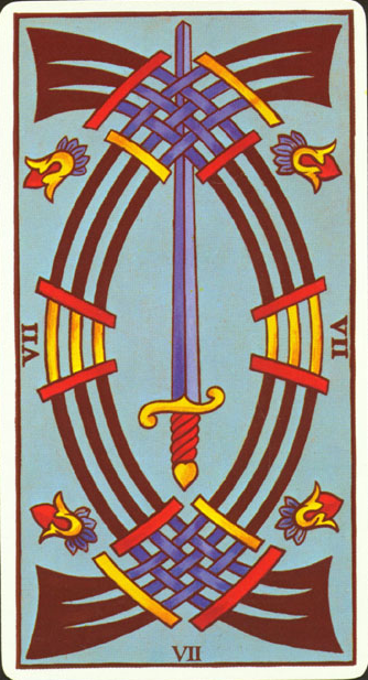 The 7 of Swords is about making slow progress because you can't trust the situation and/or people around you.
