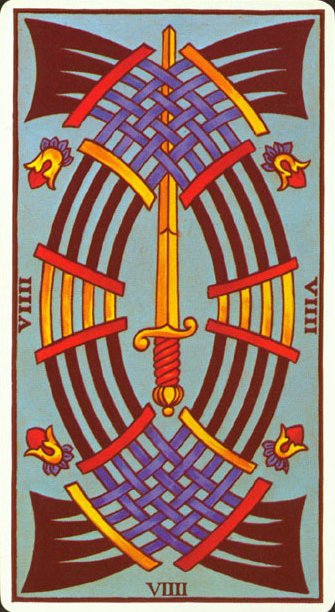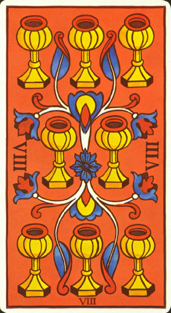 8 is an assignment number, and in the suit of Cups, it is about overcoming the urge to sink into depression caused by view on the long road ahead.