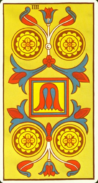 The 4 of Pentacles is about holding on to what you got. The number 4 represents structure and order, and fits well with the suit's element, Earth.