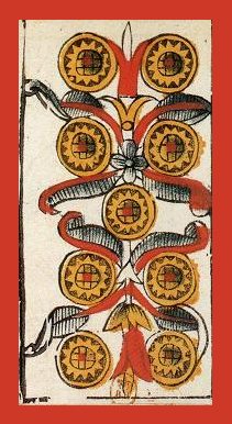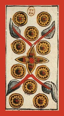 The 10 in the small arcana, any of the Wands, Cups, Swords or Coins cards, is the number that connects to the Ace of the next element.
