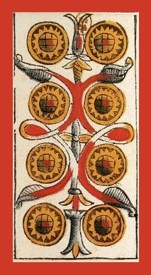 The 8 of Pentacles is about keeping up the hard work you're doing, and trying to be happy about doing that work at the same time. While the 3 of Pentacles is about completing a masterpiece, the 8 of Pentacles is about doing the apprentice work that makes you a master of your trade.