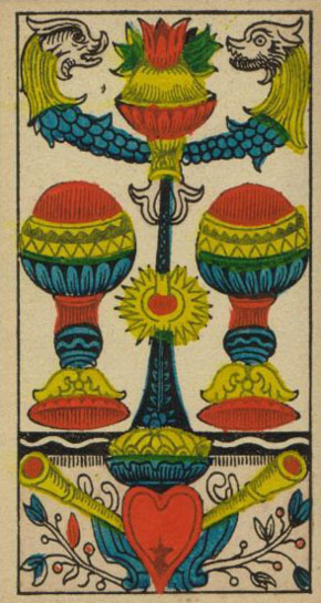 This the first assignment number of the Cups suit. Unlike Wands, with the Fire element, Cups, with the water element, has a lot more patience. Water is by nature more introspective, and this second card in the Cups suit is indeed about exploring yourself. The outcome is uncertain as always, but it usually results in better acceptance of yourself.