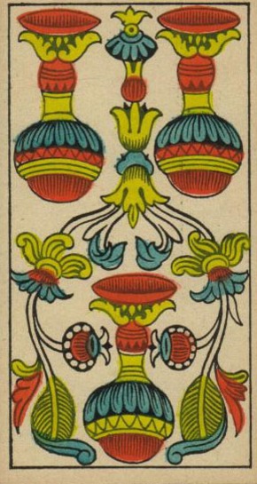 The 3 of Cups represents hope, faith and love. The 3 is a reward number and in this suit of Cups your feelings during that number will be that of joy and self-contentment.