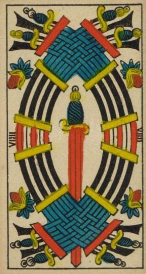 The '9 Cards' reading tells the questioner something about his past, present and future, in more detail than a '3 Cards' reading.