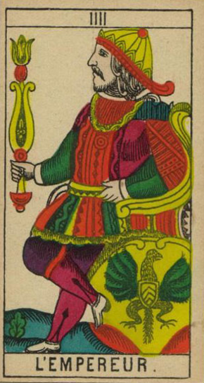 The Emperor has the number 4 attached to it. This is the number of order and structure, the number of matter; with 4 things can be built and organized.