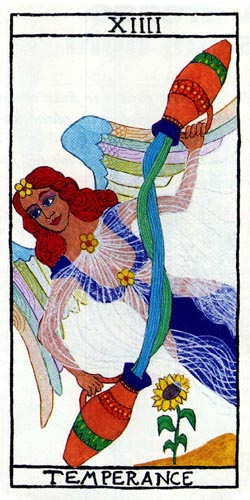 With Death, an important decision made with The Hanged Man was given shape by letting go of the old. Now you're in a transitionary period and this Temperance card is a place of rest during the journey through the underworld.