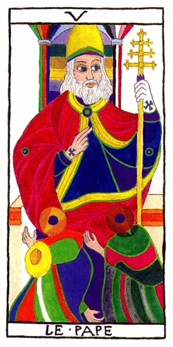 Where The Emperor is the chief of worldly power, The Hierophant is the head of spiritual matters.