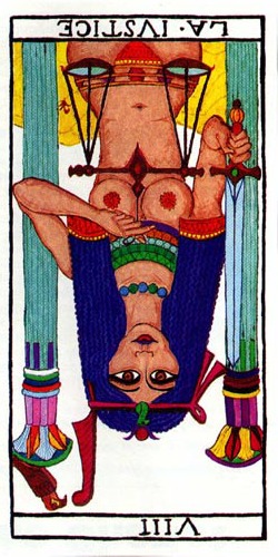 In the Rider-Waite deck, the cards for Justice and Strenght have swapped places, because Waite saw links between the cards and the astrological signs Leo and Libra.