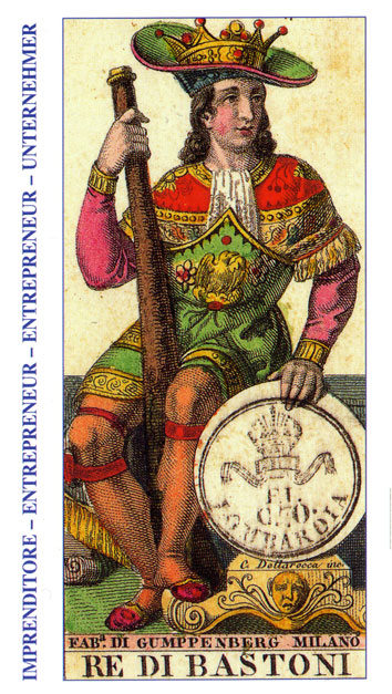 The King of Wands uses the properties of Wands (vitality, optimism, enthousiasm) to go out with confidence. He is seen as a leader with charisma.