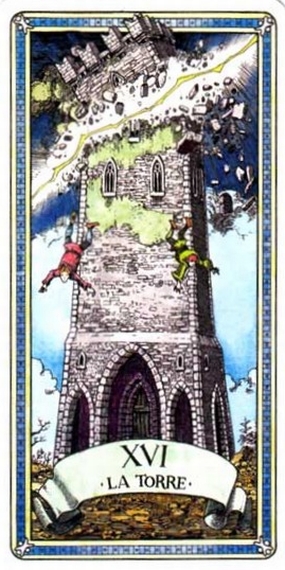 The card of The Tower goes by different names in different Tarot games. Some call it The Tower of Destruction, or The House of God, or Tower of the Light.