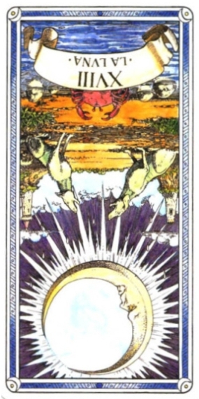 The Hermit, also a 9, closed off the upperworld. The Moon closes the underworld.