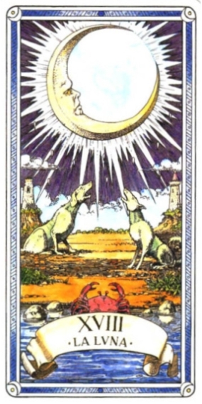 The Hermit, also a 9, closed off the upperworld. The Moon closes the underworld.