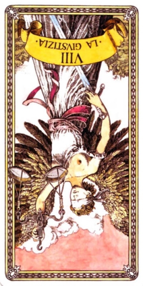 In the Rider-Waite deck, the cards for Justice and Strenght have swapped places, because Waite saw links between the cards and the astrological signs Leo and Libra.