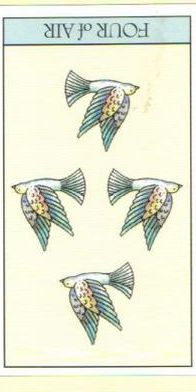 4 is the first number in the cycle of giving things shape. It's about making things real. The element of Swords also relates to making things real, so this enhances the effect so much that arrogance can cause you to exhaust yourself.