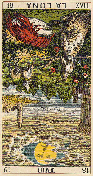 The Hermit, also a 9, closed off the upperworld. The Moon closes the underworld.