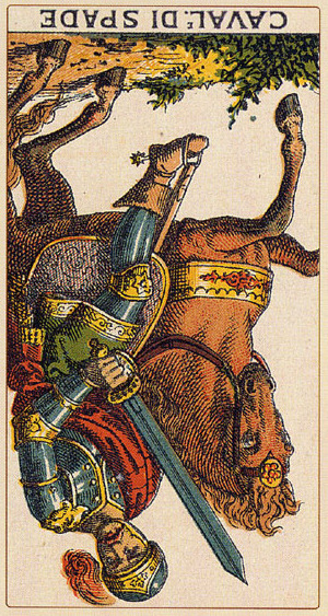The Knight of Swords lacks the naivety of the Knight of Wands, he has analyzed the terrain ahead and weighed his options there. He knows what his own nature can throw into the mix, but does not let himself be held idle by that. The activities ahead will likely include the solving of conflicts and problems on your road to your ideal.