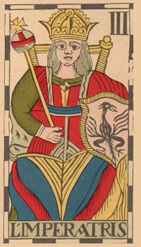 The Empress carries the number 3. This is the number of birth, of plenty, of harvest, of summer, of the first results. The number 3 stands for joy and fun, for creativity and fantasy, for warmth and humor.