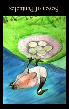 The Queen in the suit of Pentacles becomes aware of her Earthly attributes; she's reliable and sober, able to give good advice.