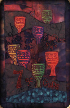 The 7 of Cups is about making a choice between different ideals. But Cups, with the water element, don't like making definitive choices that much, making this 7 in this suit a bit of a hard choice.