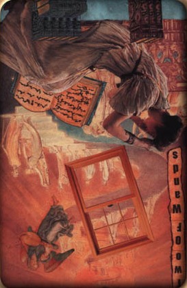 The 2 of Wands represents the research and digestion of a new idea. The number of this card and it's element are somewhat in conflict; while the 2 is focussed inwards, the Wand's element fire is outgoing. Fire wants to steam ahead while the blackbox 2 asks for patience.