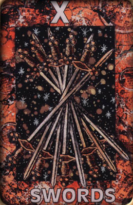 The 10 of Swords is about saying final goodbye to things or people that are bad to you.