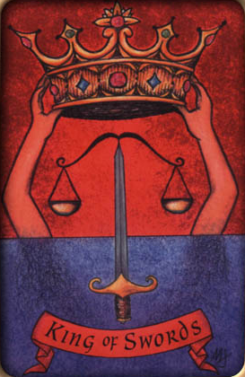 The King of Swords rules with diplomacy and a strong sense of responsibility, not just for himself but also for those around him, yet he is not afraid to make heavy decisions that compel him to eliminate dangers and dangerous opponents with some force.