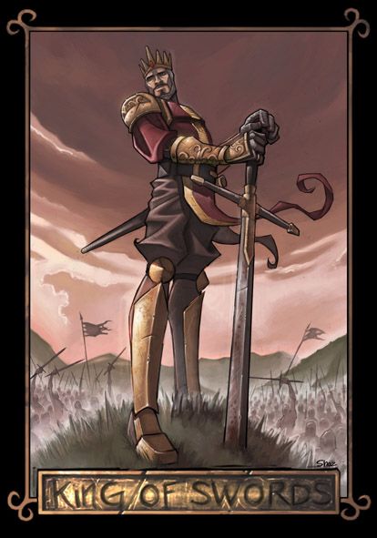 The King of Swords rules with diplomacy and a strong sense of responsibility, not just for himself but also for those around him, yet he is not afraid to make heavy decisions that compel him to eliminate dangers and dangerous opponents with some force.