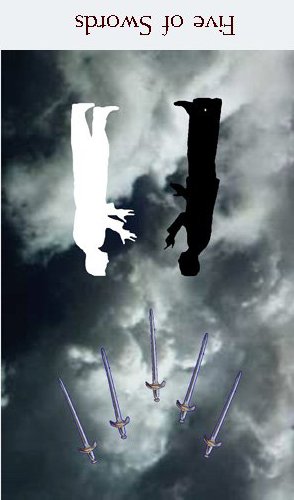 The 5 of Swords is about facing reality. The 5 is an assignment number, and in the slighly more difficult suit of Swords, it means you face a difficult challenge where your past experiences could hold you down.
