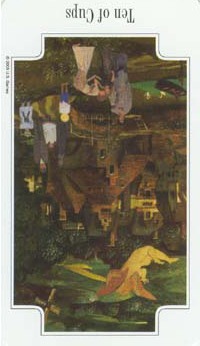 The 10 of Cups is the link to the Swords suit. It is time to leave your own emotions behind and face the world and the tasks ahead.