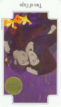 This the first assignment number of the Cups suit. Unlike Wands, with the Fire element, Cups, with the water element, has a lot more patience. Water is by nature more introspective, and this second card in the Cups suit is indeed about exploring yourself. The outcome is uncertain as always, but it usually results in better acceptance of yourself.