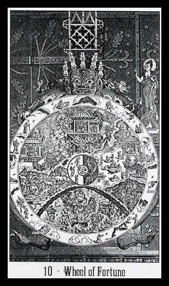 With the Wheel of Fortune, the second major cycle of Tarot commences. The first cycle in the first cards of the deck was about development as a child, accumulating wisdoms and integrating them into your personality. This second cycle is about your development as an adult. It is a more demanding cycle. You'll have to see if you can face what the world throws at you.