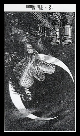 The Hermit, also a 9, closed off the upperworld. The Moon closes the underworld.