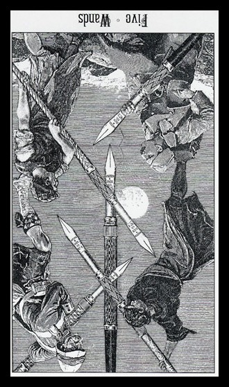 The 5 of Wands represents competition. The 5 is the second assignment number, and therefore a difficult card. 5 combined with the Wand's element fire challenges you. You'll have to fight hard for your idea, but you stand a good chance of succeeding.