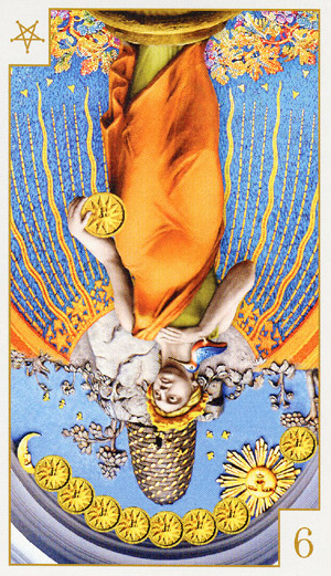 This card carries the number 6. It is the number of protection, of stability and security. It comes after the assignment number 5, it is the reward after hard work.