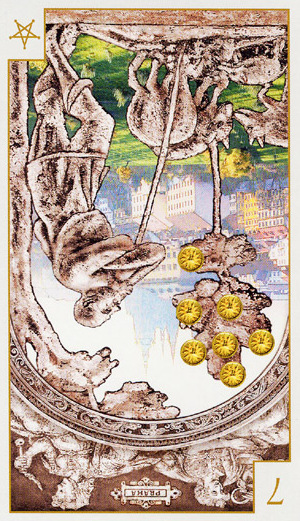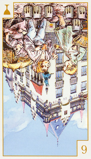 The 10 of Wands is therefore the transition from the element Fire (associated with Wands) to the element Water, associated with Cups. As you might imagine, this not the easiest of transitions.