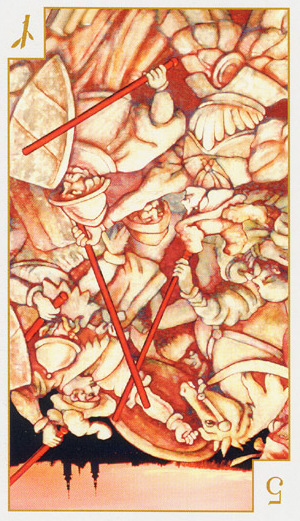 The 5 of Wands represents competition. The 5 is the second assignment number, and therefore a difficult card. 5 combined with the Wand's element fire challenges you. You'll have to fight hard for your idea, but you stand a good chance of succeeding.