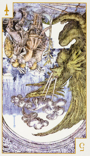The 5 of Swords is about facing reality. The 5 is an assignment number, and in the slighly more difficult suit of Swords, it means you face a difficult challenge where your past experiences could hold you down.