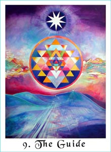 The Hermit carries the number 9. This is the highest base number. After 9 the composed numbers emerge. Therefore the number 9 is the gateway to a higher order. It is also a place to rest before embarking on the next leg of the journey.