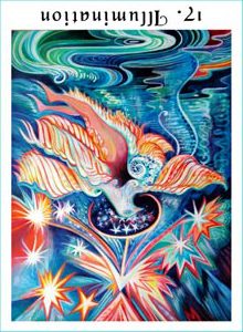 With The Sun the third and final cycle of Tarot is commenced. The first cycle was the upperworld or childphase, a place to start and gain inputs. Here you gained wisdoms, knowledge and ideas. The second cycle was the underworld or adult phase or assignments phase, the hard cycle where you had to really work for gains. This third cycle that starts at The Sun, is the phase of rewards, of enjoyment of results.