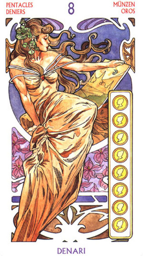 The 8 of Swords is about slowly regaining strength and energy. The 8 is an assignment number, and in the element of Swords it's a bit harder than usual.