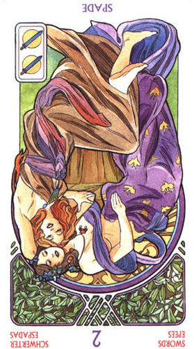 The 2 is an assignment number in tarot, and in this case of the 2 of Swords, it's about being forced to wait for something, often even while blindfolded in some sense.