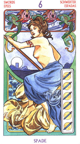 The 6 of Swords is a reward number after the hard assignment in 5 of Swords, it brings you to a safe place to rest a bit.