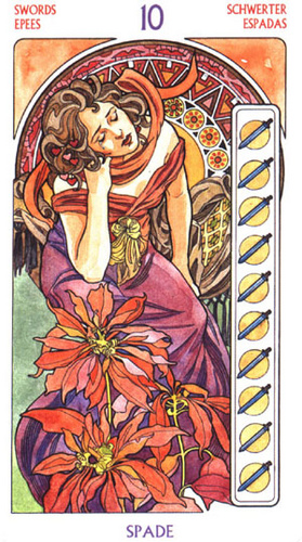The 10 of Swords is about saying final goodbye to things or people that are bad to you.