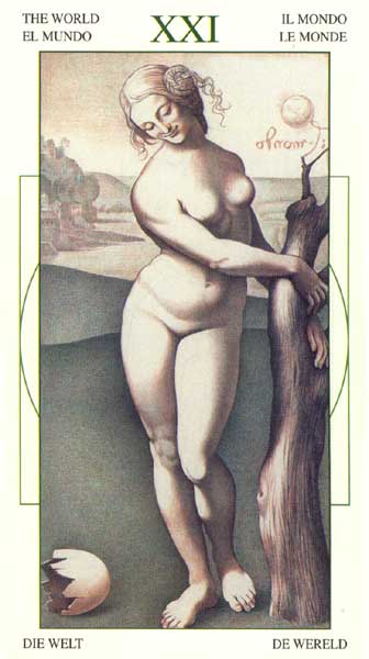 The World carries the number 21. As a composed number that is 3. The World is the third 3 in the Major Arcana. 3 is a reward number, so the third 3 must be even more powerful.