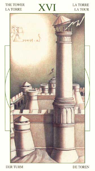 The card of The Tower goes by different names in different Tarot games. Some call it The Tower of Destruction, or The House of God, or Tower of the Light.