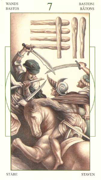 With the 7 of Wands, the striving cycle starts. It is about having the determination to complete your ideas, despite the fact that that might cause you some discomfort.