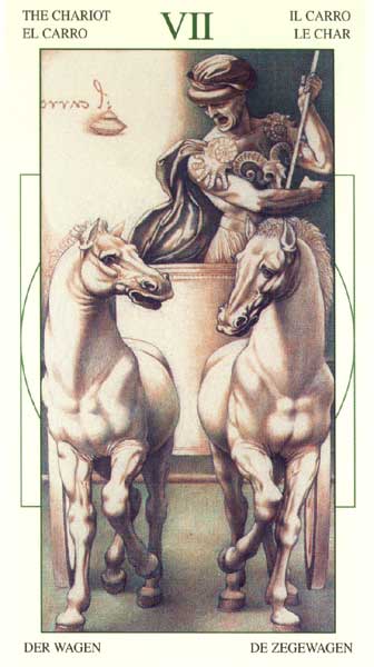During the prevous card, The Lovers, all the wisdom of the first cards in the deck has been processed and a choice was made for personal growth. Now it's time to do something with all this baggage, to actually travel the road. A lot has been done so far, wisdoms have been accumulated and integrated into one's personality.