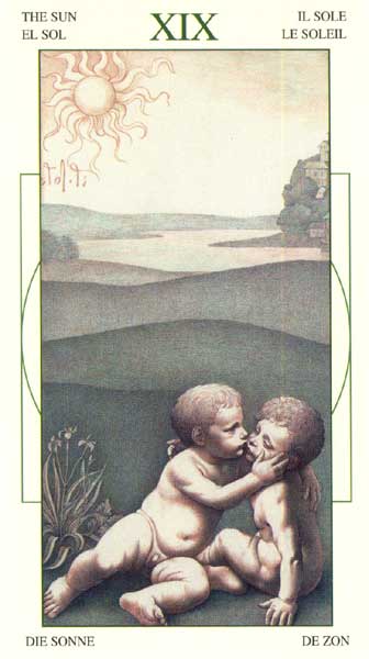 The Sun carries the number 19, a composed value of 1. This is the third composed 1 in the Major Arcana. It's the culmination of the 1's. The third 1 is a reward and a beginning at the same time. It also represents creative energy.
